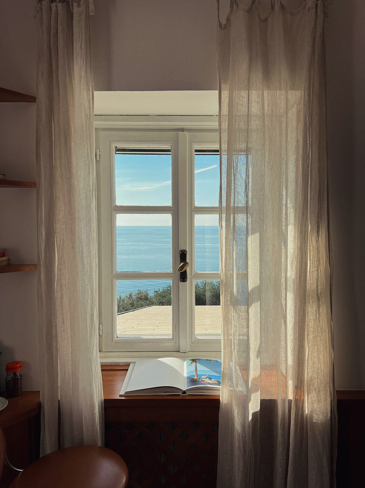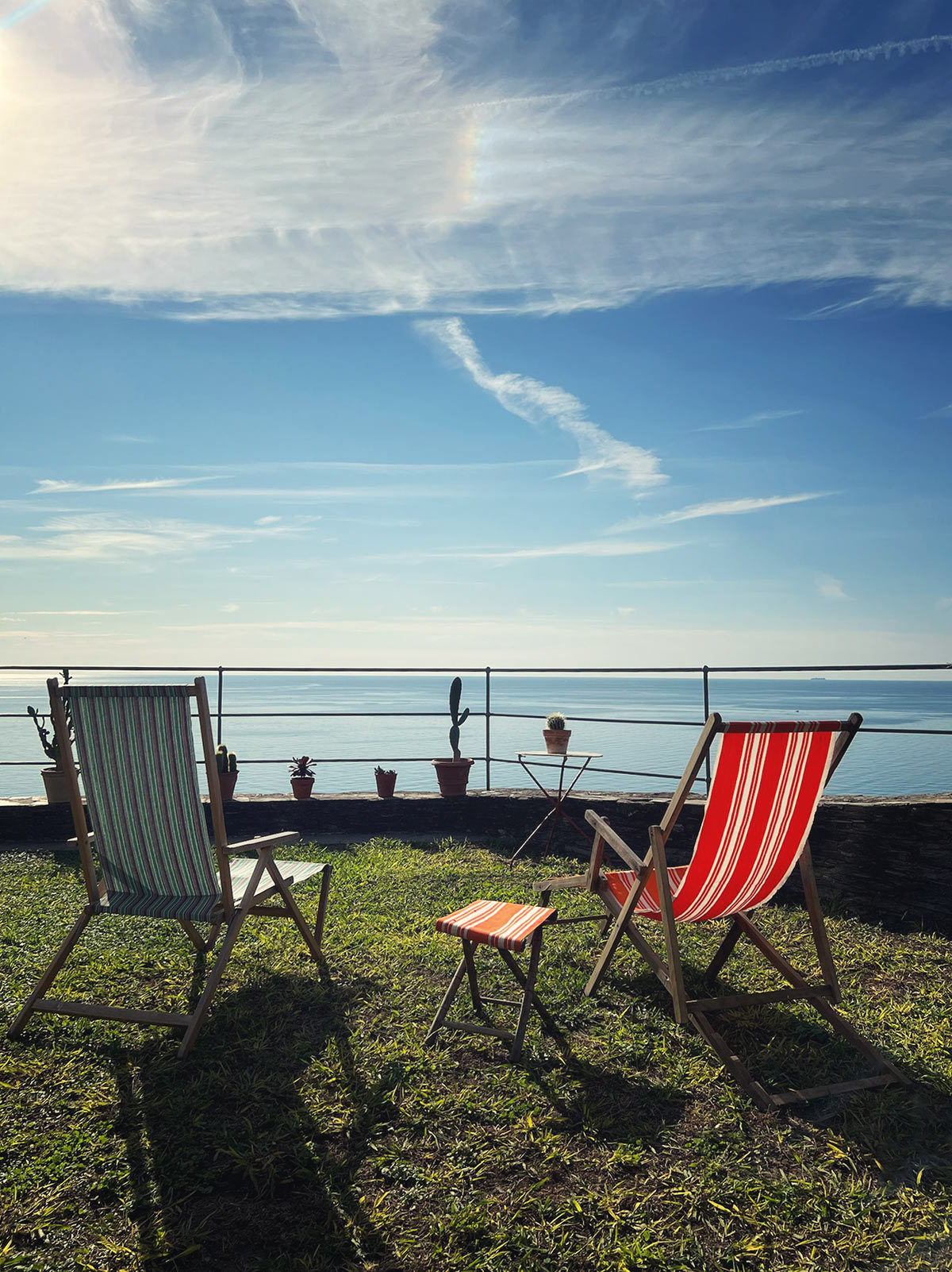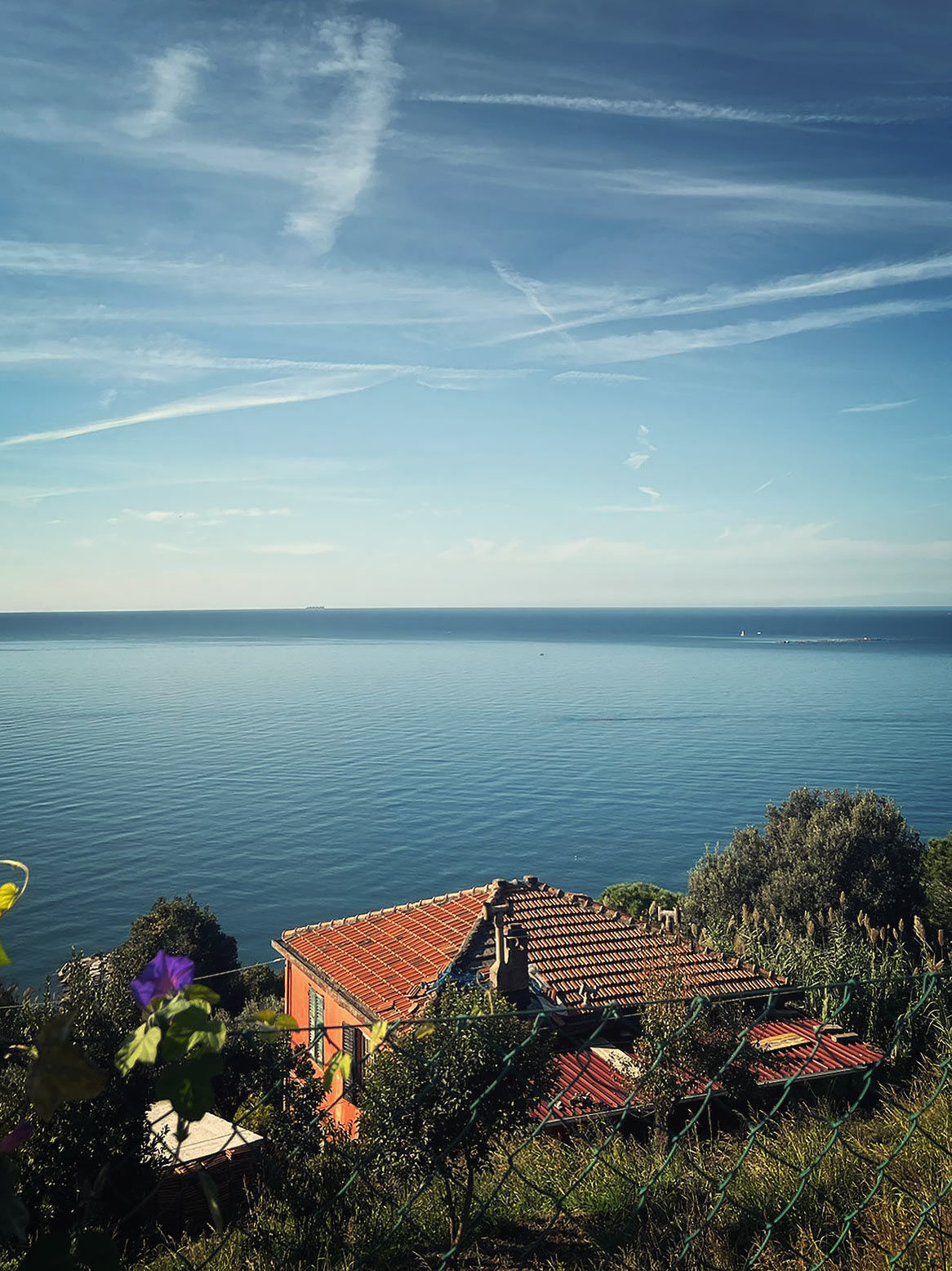 Wie immer: Geografie. Denn das neue Casa Pernice liegt atemberaubend schön über dem Golf von Tigullio an der ligurischen Küste zwischen Genua und La Spezia, nicht weit vom bekannten Portofino. Dieses Blau, gepaart mit dem Duft des Salzes und dem beruhigenden Rauschen der Wellen ist das erste, was einem an diesem Platz auffällt.