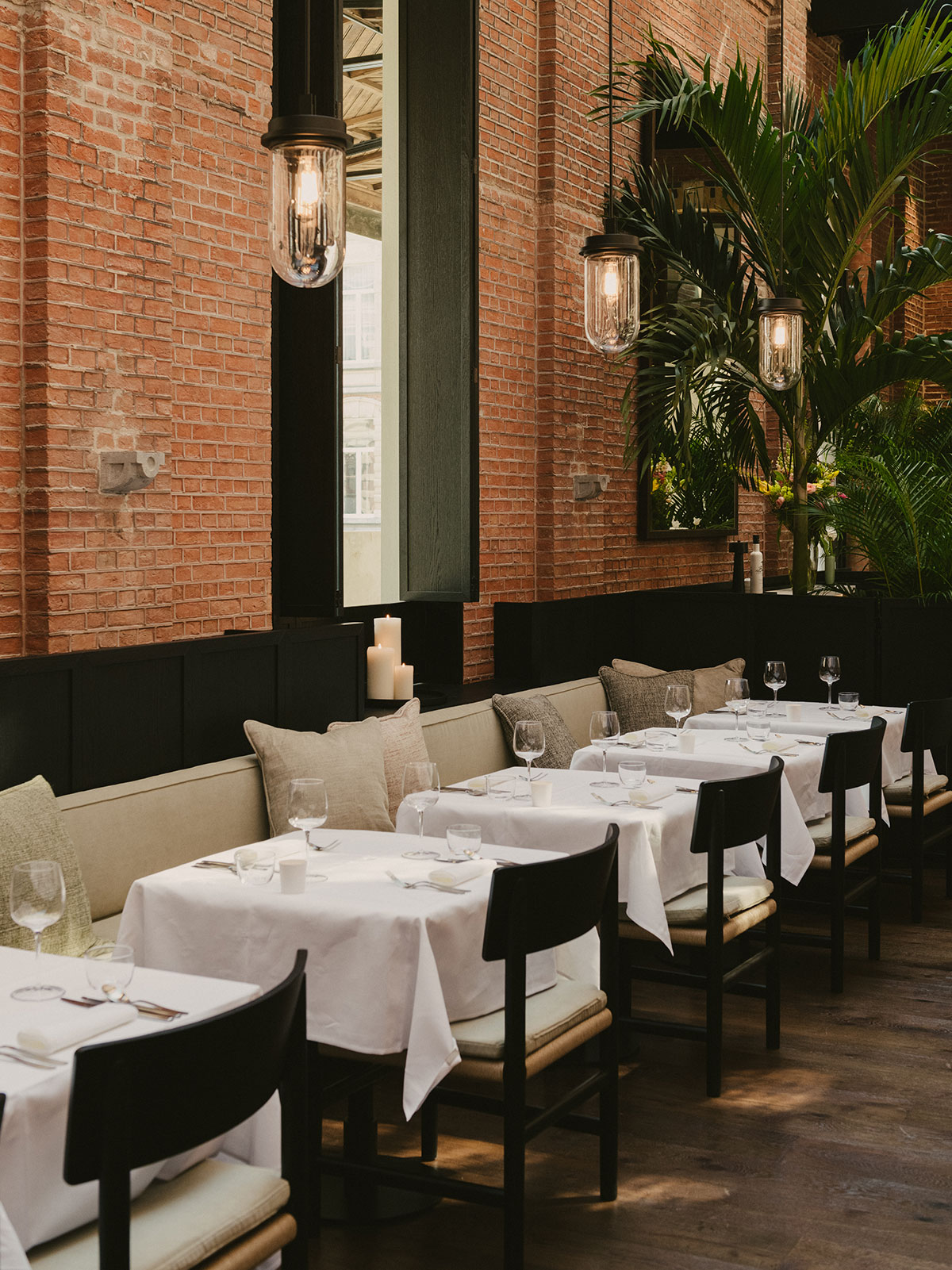 Frühstück gibt es jeden Morgen à la carte. Bei gutem Wetter kann man im Innenhof und Garten sitzen. Und auch sonst gibt es überall im Haus verteilt besondere Sitzecken und weitere Rückzugsräume, die auch für Private Dining gemietet werden können.